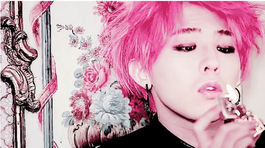 大势防弹团的硕珍欧巴,新专同样用了粉红发色,讲真,男生染这种发色真的需要颜才能hold住啊!